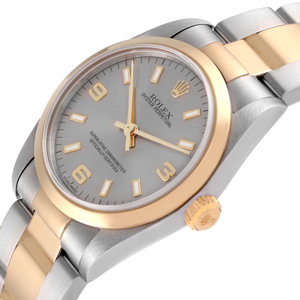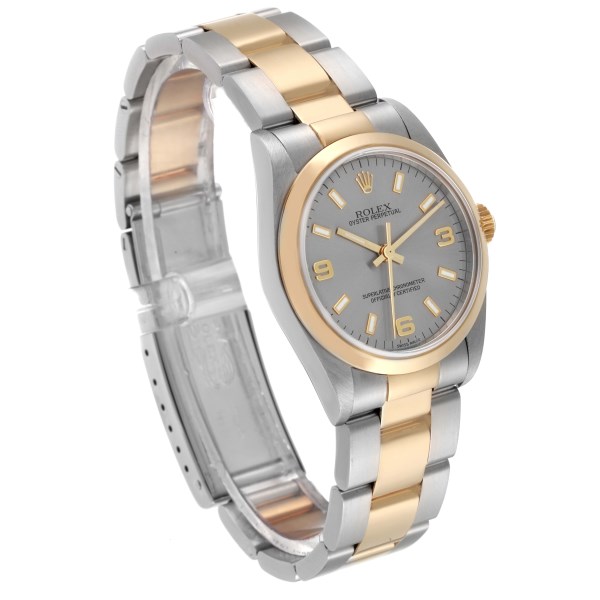 | Model Name: | Rolex Oyster Perpetual Midsize Slate Dial Steel Yellow Gold Watch 77483 Papers |