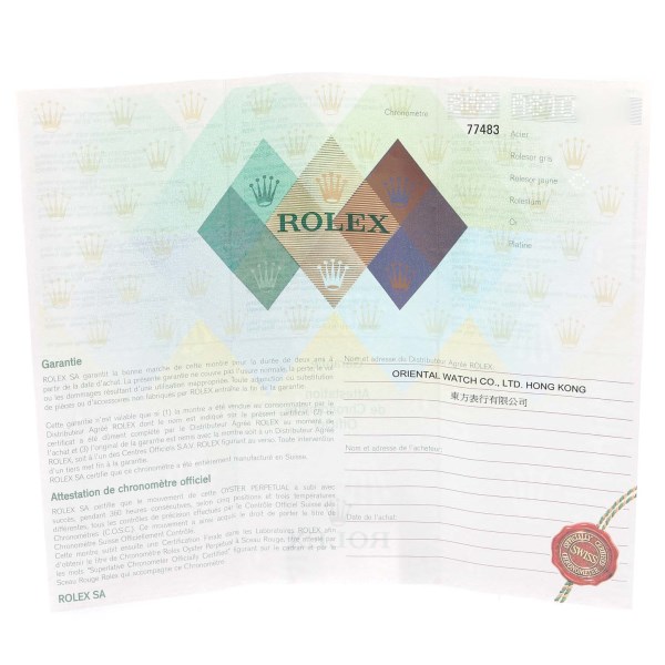 | Box & Papers: | Rolex papers, presentation non-Rolex box. |