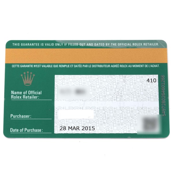 | Box & Papers: | Rolex box and card. |