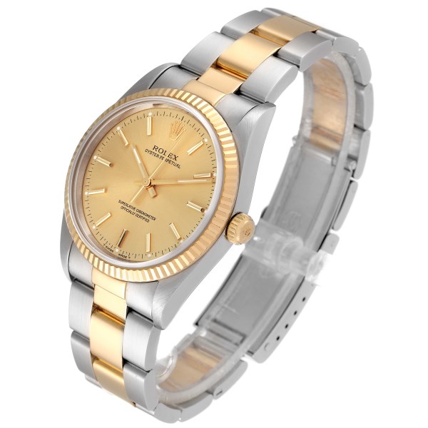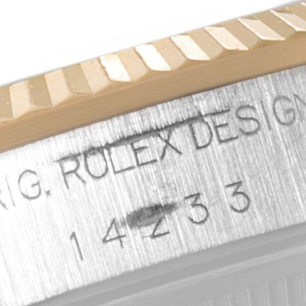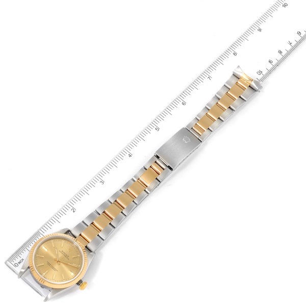 | Case: | Stainless steel and 18K yellow gold oyster case 34.0 mm in diameter. Rolex logo on a crown. |