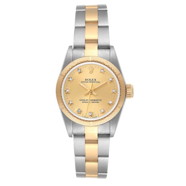 | Model Name: | Rolex Oyster Perpetual NonDate Steel Yellow Gold Diamond Ladies Watch 67243 |