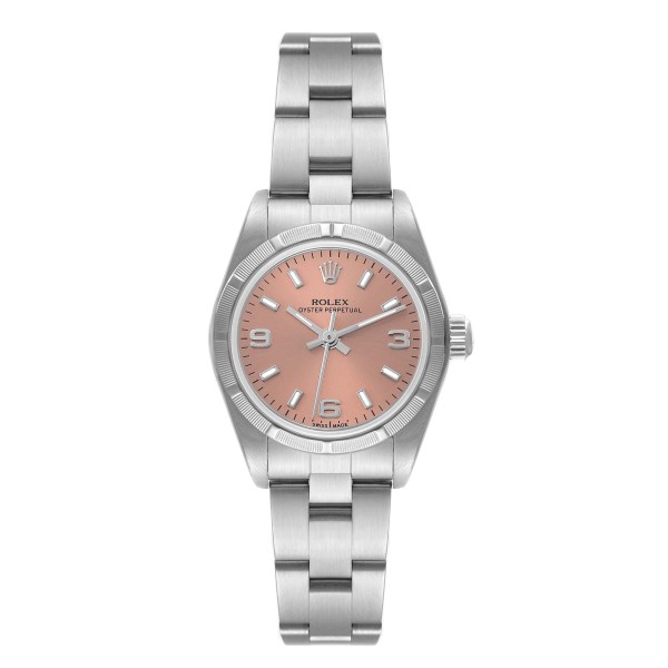 | Model Name: | Rolex Oyster Perpetual Salmon Dial Engine Turned Bezel Steel Ladies Watch 76030 |