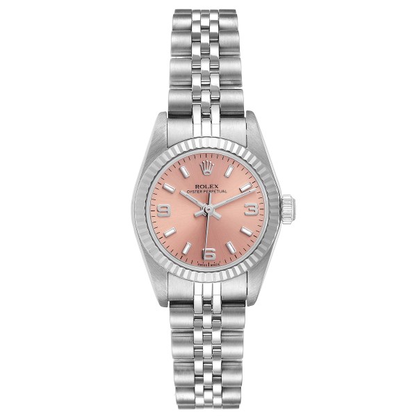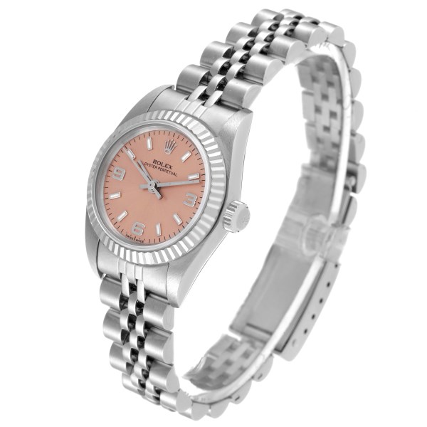 | Model Name: | Rolex Oyster Perpetual Salmon Dial Steel White Gold Ladies Watch 76094 Papers |