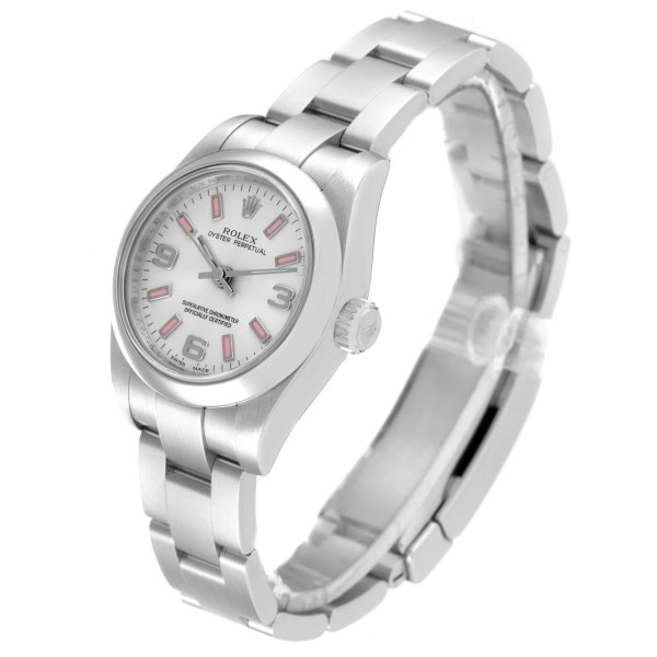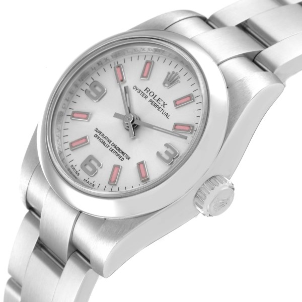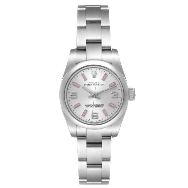 | Model Name: | Rolex Oyster Perpetual Silver Dial Pink Luminous Markers Ladies Watch 176200 |
