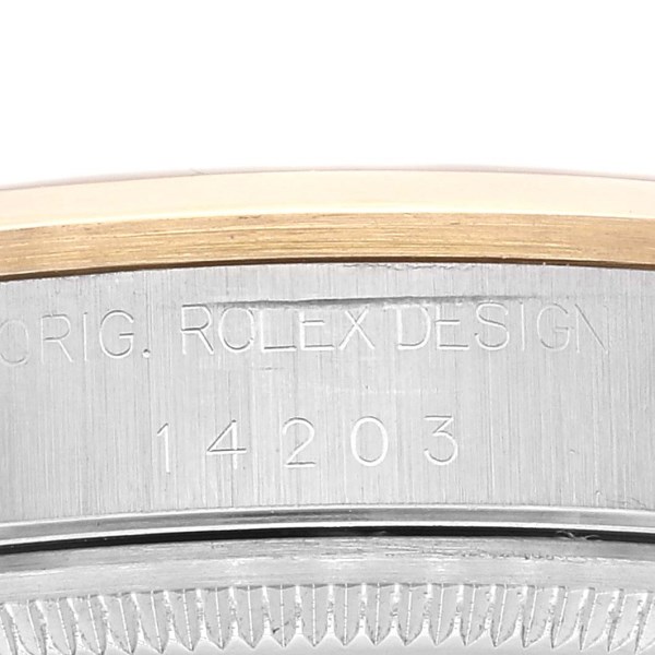 | Model Name: | Rolex Oyster Perpetual Steel Yellow Gold Slate Dial Mens Watch 14203 |