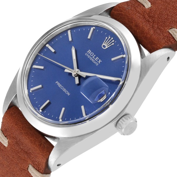| Model Name: | Rolex OysterDate Precision Blue Dial Steel Vintage Mens Watch 6694 |