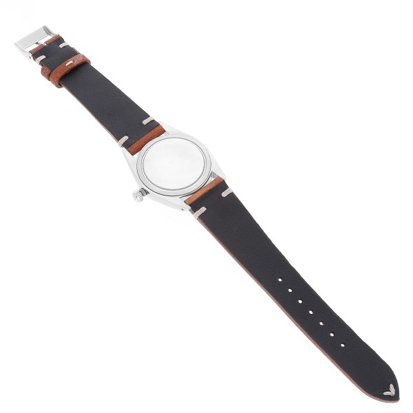 | Bracelet: | Custom brown leather strap with stainless steel tang buckle. |