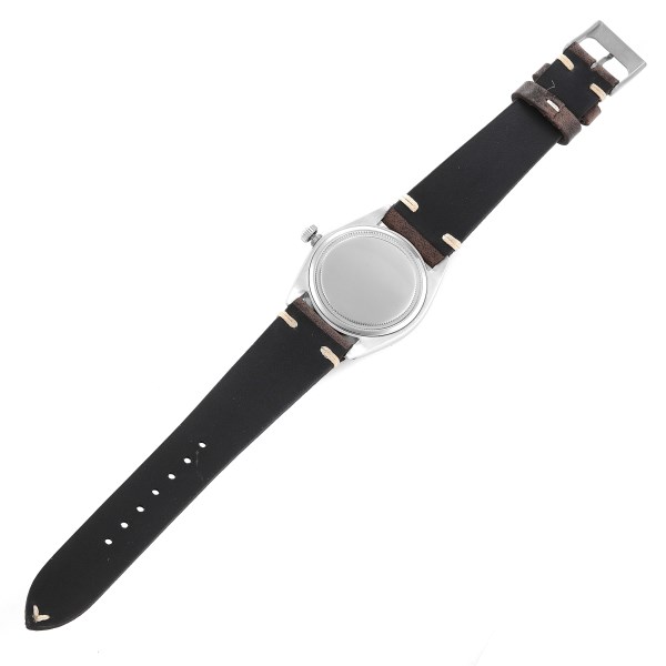 | Bracelet: | Custom brown leather strap with stainless steel tang buckle. |