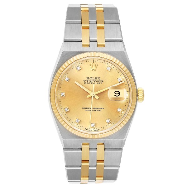 | Model Name: | Rolex Oysterquartz Datejust Steel Yellow Gold Diamond Watch 17013 Box Papers |