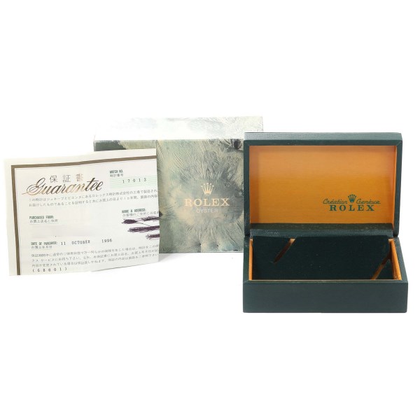 | Case: | Stainless steel oyster case 36 mm in diameter. Rolex logo on the crown. |