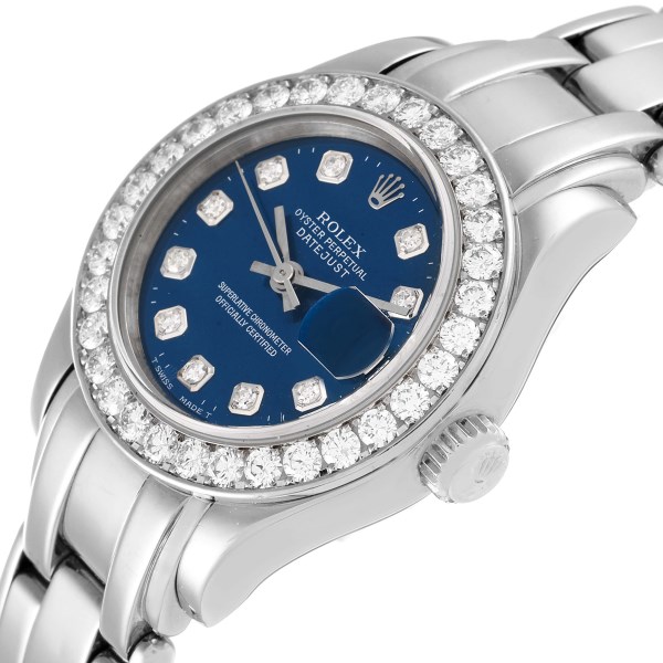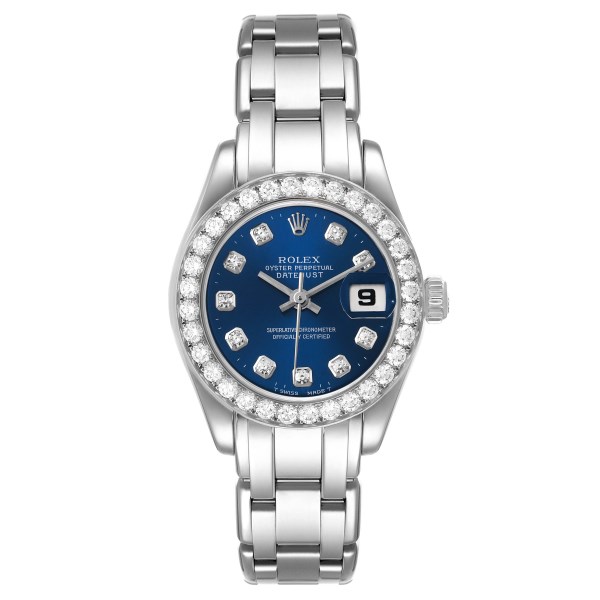 | Model Name: | Rolex Pearlmaster 18K White Gold Blue Diamond Dial Bezel Watch 69299 |