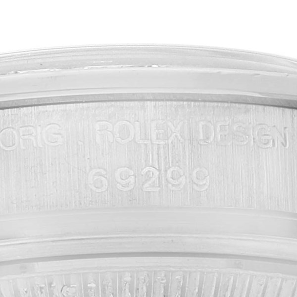 | Case: | 18k white gold oyster case 29.0 mm in diameter. Rolex logo on a crown. |