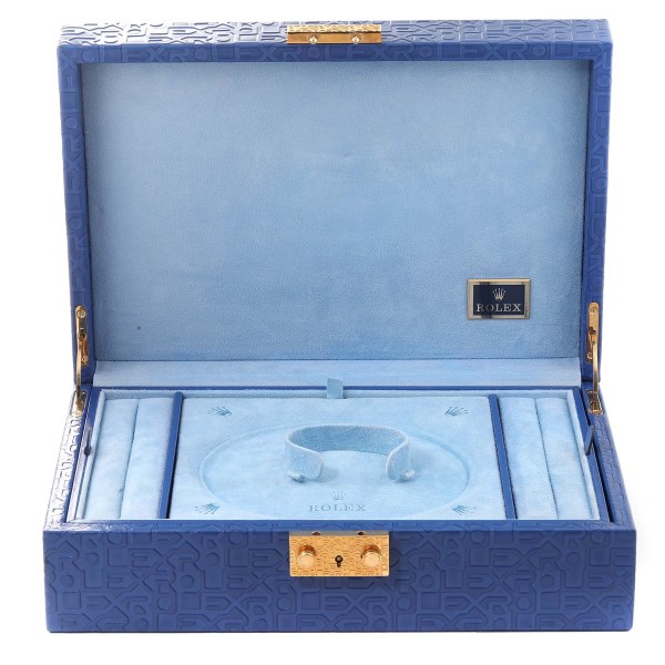 | Dial: | Blue dial with original Rolex factory set diamond hour markers. Date calendar at 3 o'clock aperture. |