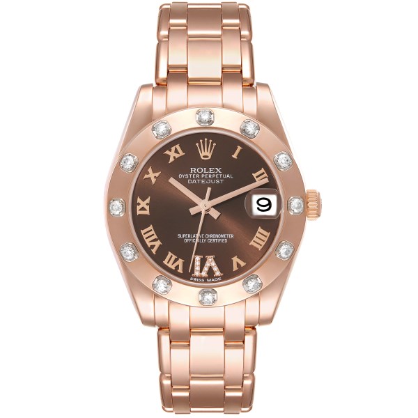 | Model Name: | Rolex Pearlmaster 34mm Chocolate Dial Rose Gold Diamond Ladies Watch 81315 |
