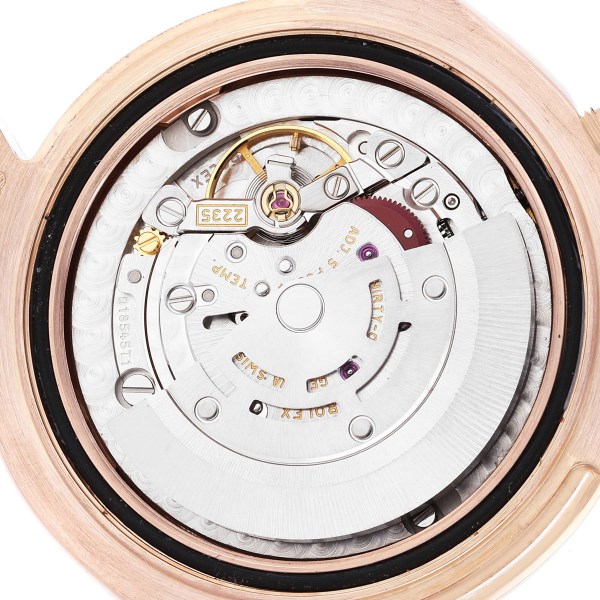 | Case: | 18k rose gold oyster case 34.0 mm in diameter. Rolex logo on the crown. |