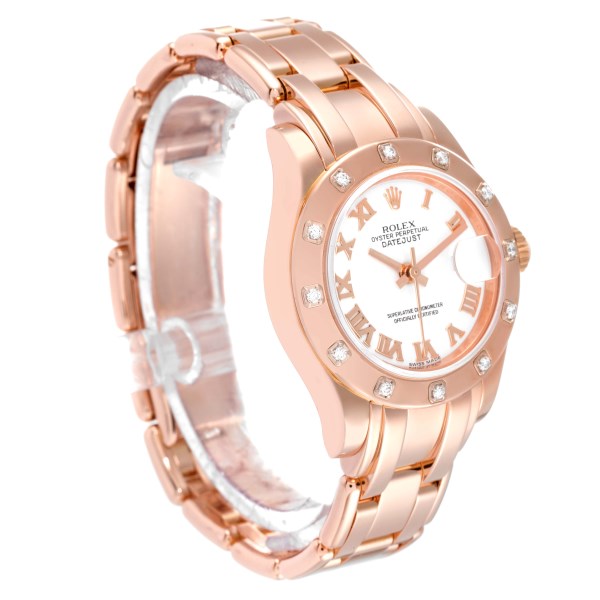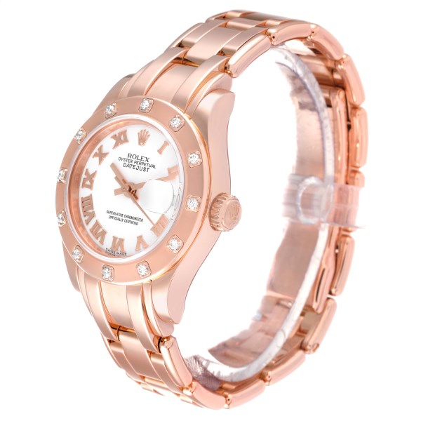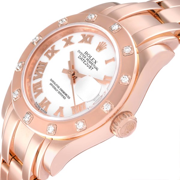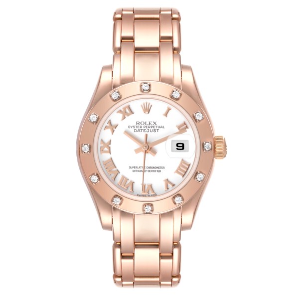 | Model Name: | Rolex Pearlmaster Rose Gold White Roman Dial Diamond Ladies Watch 80315 Box Card |