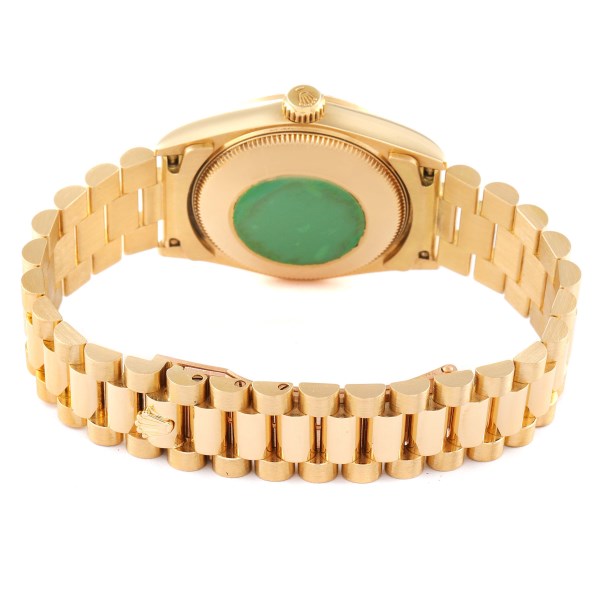 | Bracelet: | 18k yellow gold president bracelet with hidden clasp. Fits 6 3/4" wrist. |