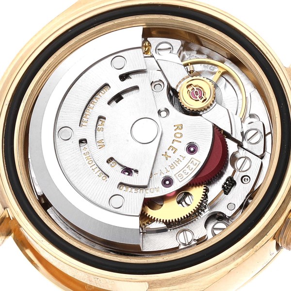 | Case: | 18k yellow gold oyster case 28.0 mm in diameter. Rolex logo on a crown. |