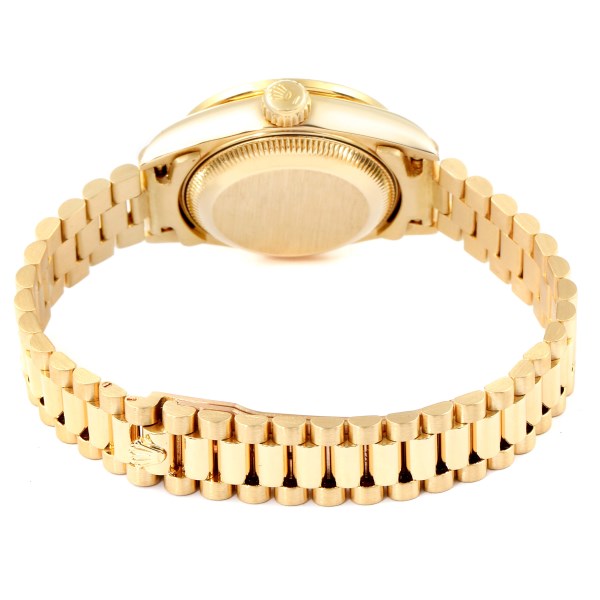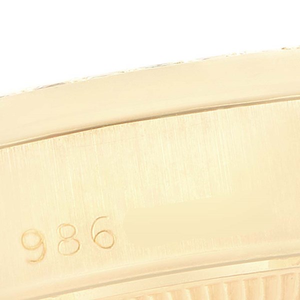 | Case: | 18k yellow gold oyster case 26.0 mm in diameter. Rolex logo on a crown. Original Rolex factory Diamond lugs. |