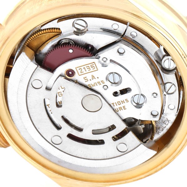 | Bezel: | Original Rolex factory 18k yellow gold diamond, ruby and emerald bezel |