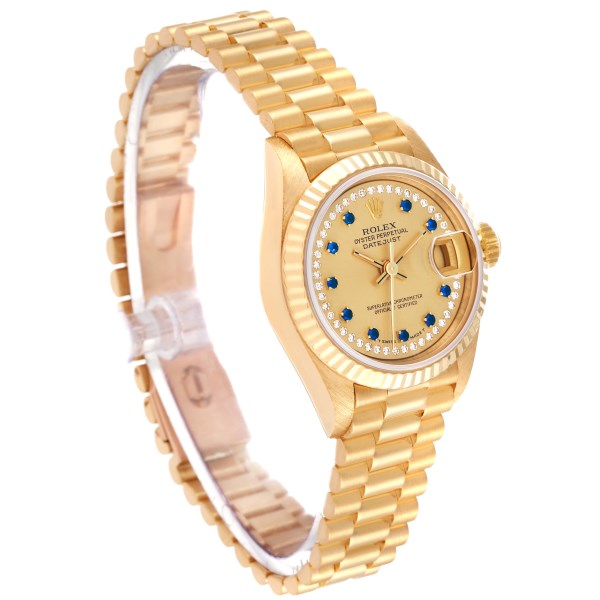| Model Name: | Rolex President Datejust Yellow Gold Diamonds Sapphire Watch 69178 |