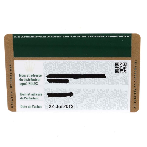 | Box & Papers: | Rolex box and card |