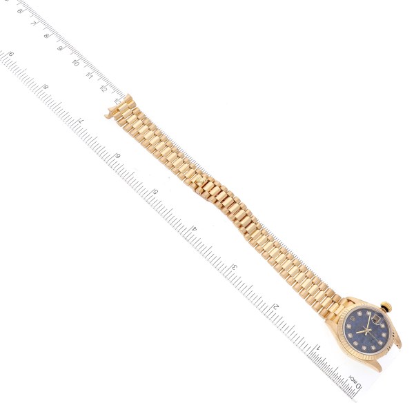 | Model Name: | Rolex President Datejust Yellow Gold Sodalite Stone Diamond Dial Ladies Watch 69178 |