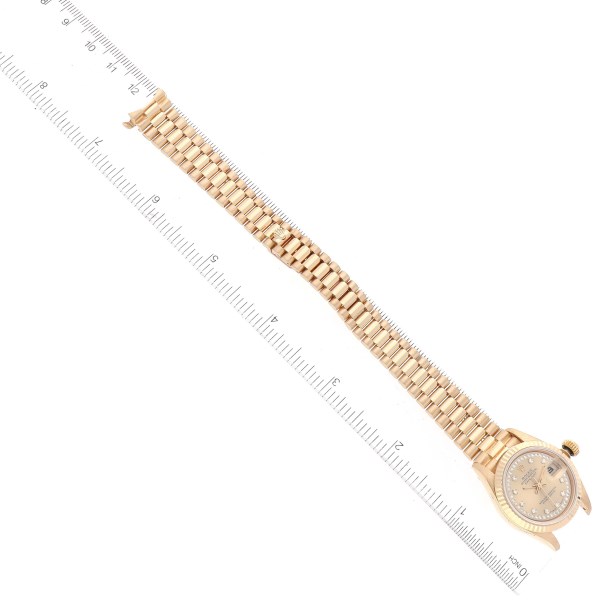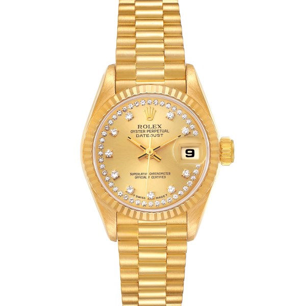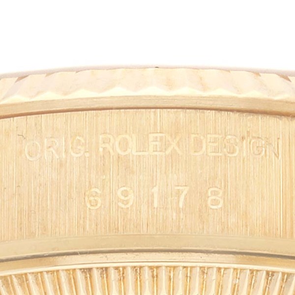 | Model Name: | Rolex President Datejust Yellow Gold String Diamond Dial Ladies Watch 69178 |