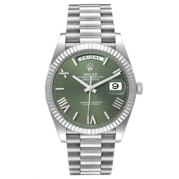 | Model Name: | Rolex President Day-Date 40 Green Dial White Gold Mens Watch 228239 Unworn |