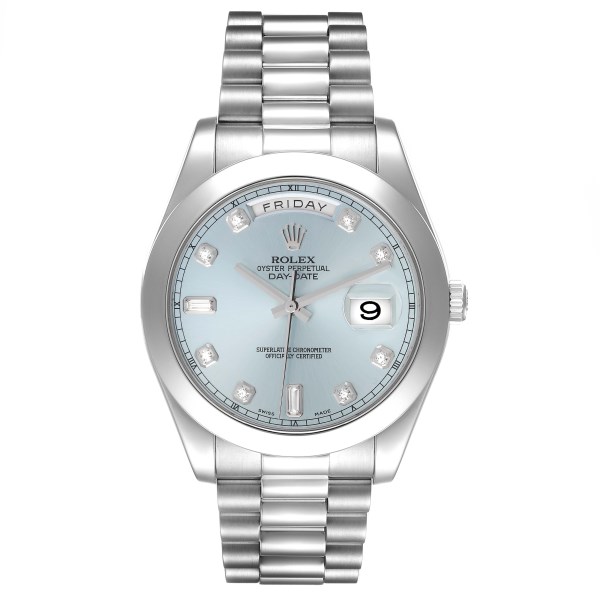 | Model Name: | Rolex President Day-Date 41 Blue Diamond Dial Platinum Mens Watch 218206 |