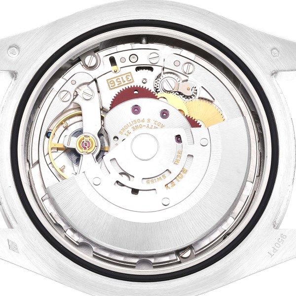 | Dial: | Ice blue dial with original Rolex factory diamond hour markers. Sweep centre seconds. Outer minute and 1/2 seconds divisions, aperture for day of the week at 12, aperture for date at 3. |