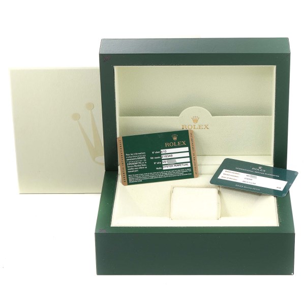 | Model Name: | Rolex President Day-Date II White Gold Diamond Mens Watch 218349 Box Card |