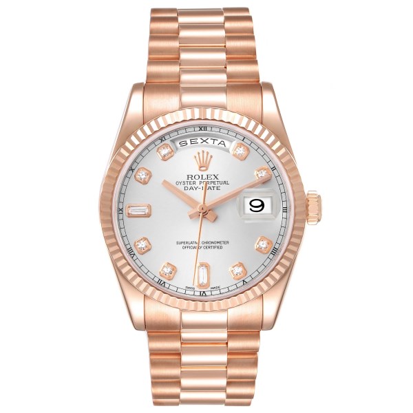 | Model Name: | Rolex President Day-Date Rose Gold Silver Diamond Dial Mens Watch 118235 |