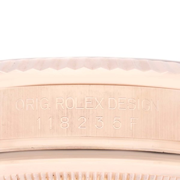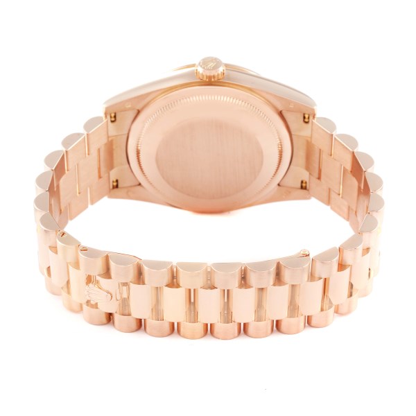 | Bracelet: | 18k Everose gold President bracelet with hidden clasp. Fits 7" wrist. |