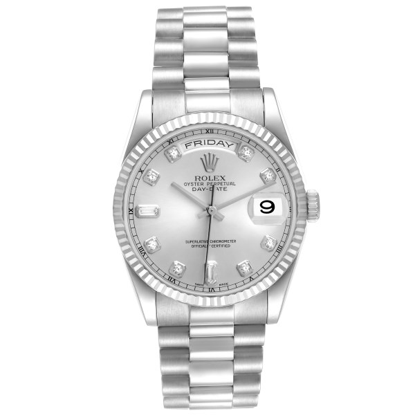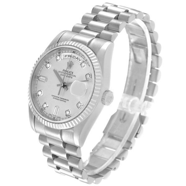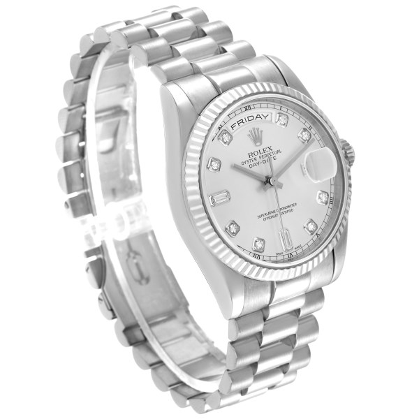 | Model Name: | Rolex President Day-Date White Gold Diamond Dial Mens Watch 118239 Box Papers |