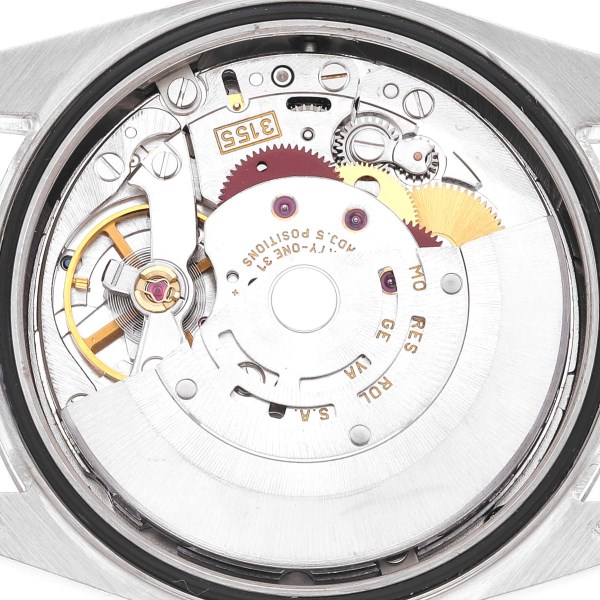| Dial: | Silver dial with original Rolex factory diamond hour markers. Sweep centre seconds. Outer minute and 1/2 seconds divisions, aperture for day at 12, aperture for date at 3. |