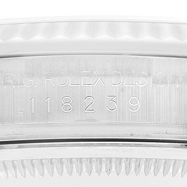 | Case: | 18k white gold oyster case 36.0 mm in diameter. Rolex logo on a crown. |