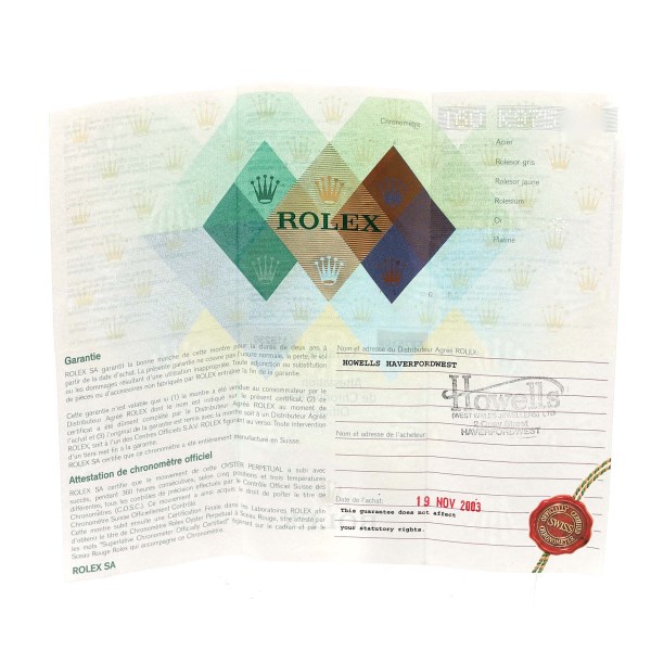 | Box & Papers: | Rolex box and papers. |