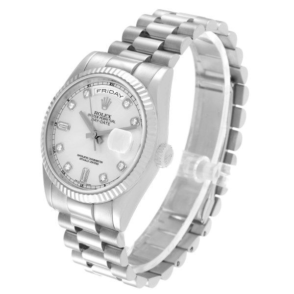 | Model Name: | Rolex President Day-Date White Gold Diamond Dial Mens Watch 118239 Box Papers |