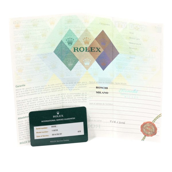 | Case: | 18k white gold oyster case 36.0 mm in diameter. Rolex logo on a crown. |