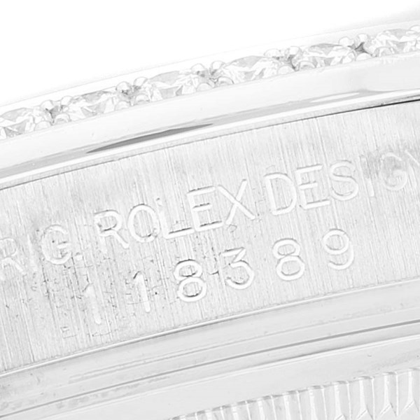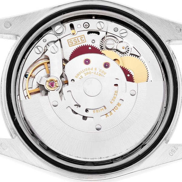 | Case: | 18k white gold oyster case 36.0 mm in diameter. Rolex logo on a crown. Original Rolex factory diamond lugs. |