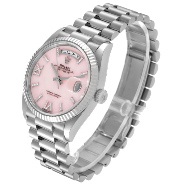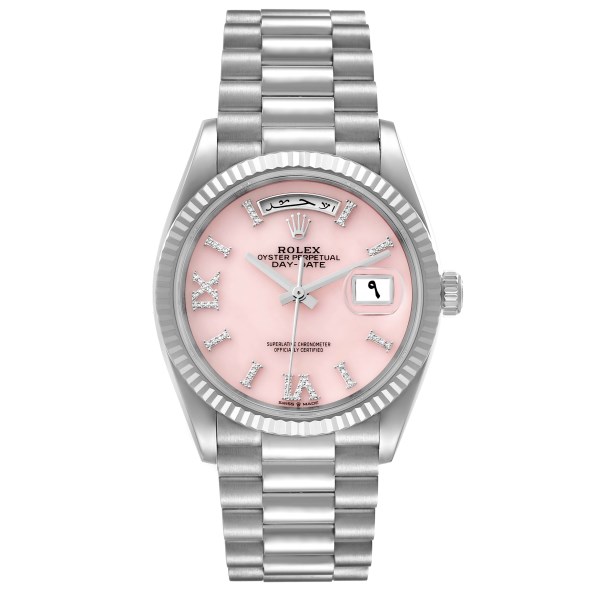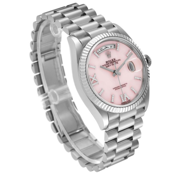 | Model Name: | Rolex President Day-Date White Gold Pink Opal Diamond Dial Watch 128239 Box Card |