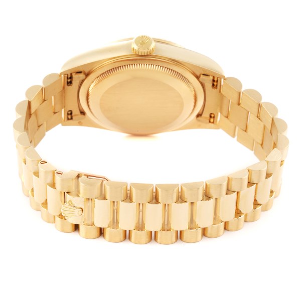 | Bracelet: | 18k yellow gold president bracelet. Fits 7" wrist. |