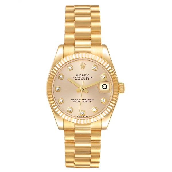 | Model Name: | Rolex President Midsize Yellow Gold Diamond Ladies Watch 178278 Box Papers |
