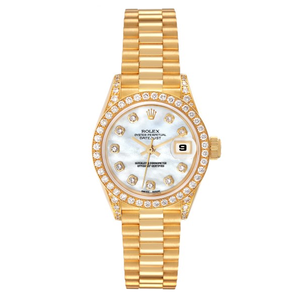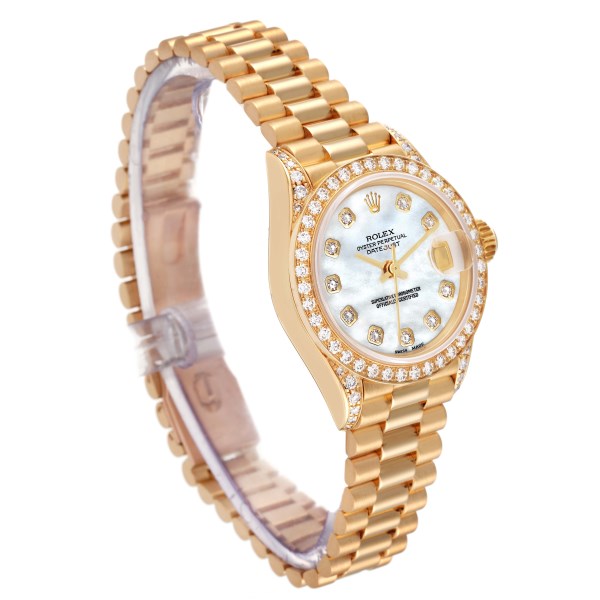 | Model Name: | Rolex President Yellow Gold Mother of Pearl Diamond Ladies Watch 69158 |