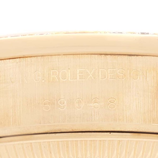 | Bezel: | Original Rolex factory diamond and ruby bezel. |