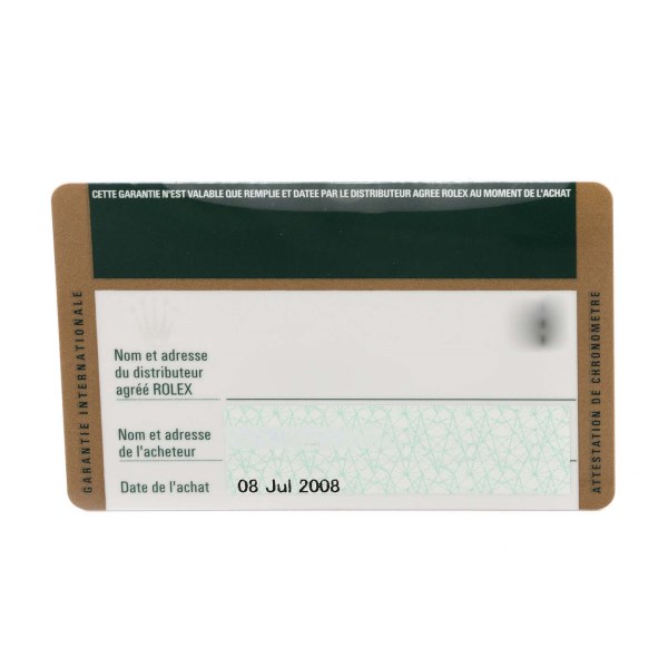 | Box & Papers: | Rolex box and card. |