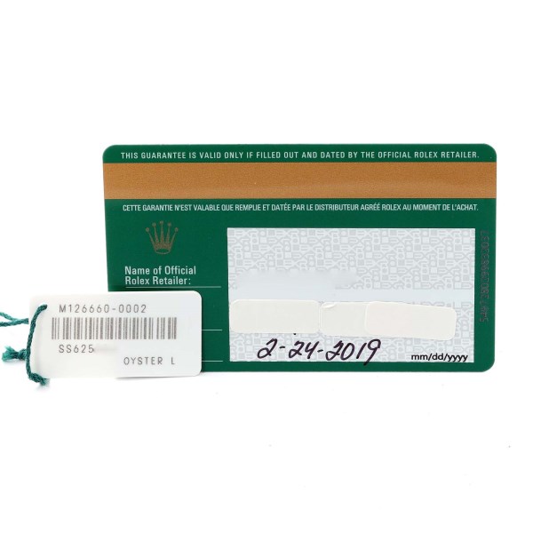 | Box & Papers: | Rolex box and card. |
