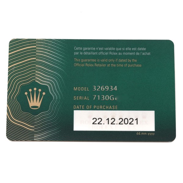 | Box & Papers: | Rolex box and card |