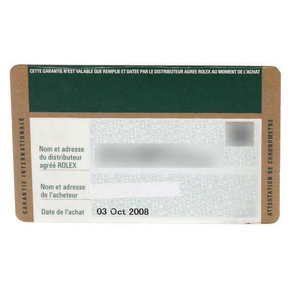 | Box & Papers: | Rolex box and card. |